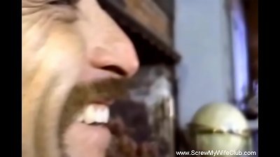 很酷的巨大球袋熟女在作弊配偶面前被操,而他在角落里挤奶