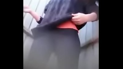 她很震惊!我冒险在戴头巾的女人面前把香肠拿出来。