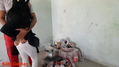 伙计把学校的女士带到厨房,给她做爱